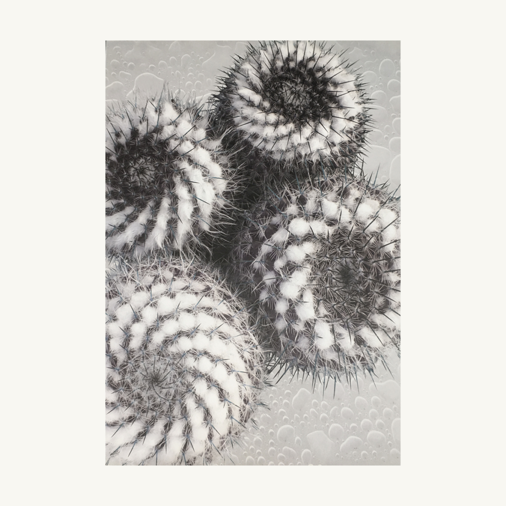 Mammillaria hahniana er en art vortekaktus, der vokser langsomt og er en af de mest udbredte kaktustyper. Denne botaniske plakat viser en klynge af kaktus set oppefra med deres karakteristiske nåle og fine, hvide hår. Fra dette perspektiv får motivet et dramatisk og skulpturelt udtryk, understreget af en beroligende baggrund med vanddråber i grå nuancer. Trykt på mat kvalitetspapir med høj farvekontrast, der fremhæver detaljerne. Ideelt valg til den naturinteresserede, til hjemmet eller kontoret.